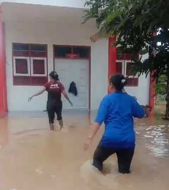 Banjir di Muara Wis Tak Surutkan Semangat Belajar Siswa SMPN 2 Muara Wis